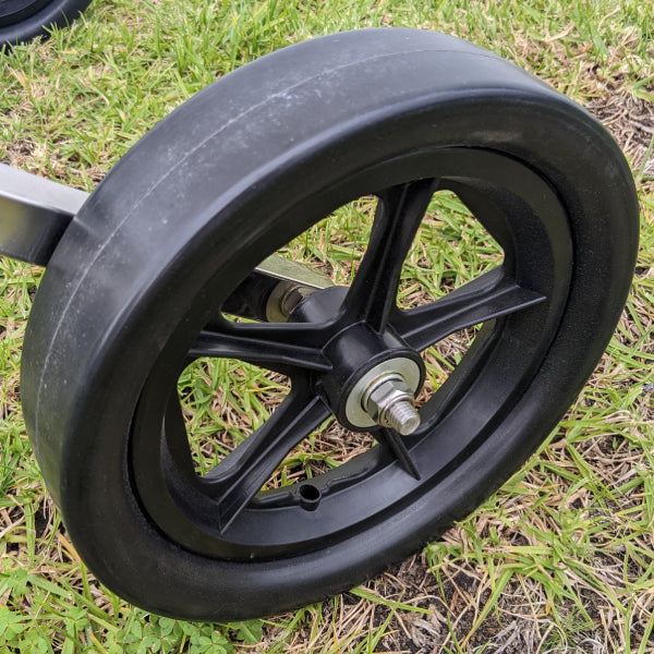 Wide wheels make it easy to push across grass, gravel or pathways.
